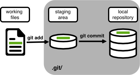 .gitsubdirectory of the repository’s root directory.git statusshows the status of a repository.git addputs files in the repository’s staging area.git commitsaves the staged content as a new commit in the local repository.git loglists previous commits.git diffshows the difference between two versions of the repository.Synchronize your local repository with a remote repository